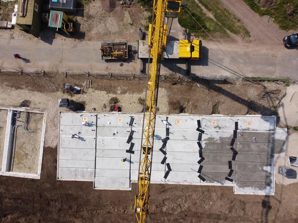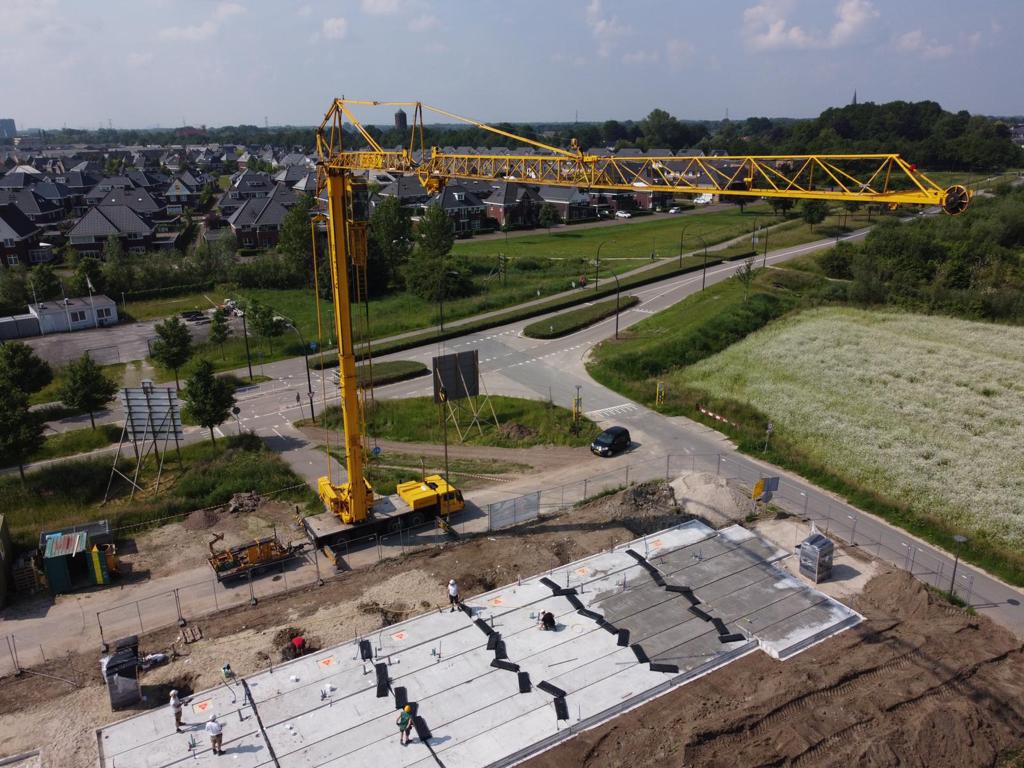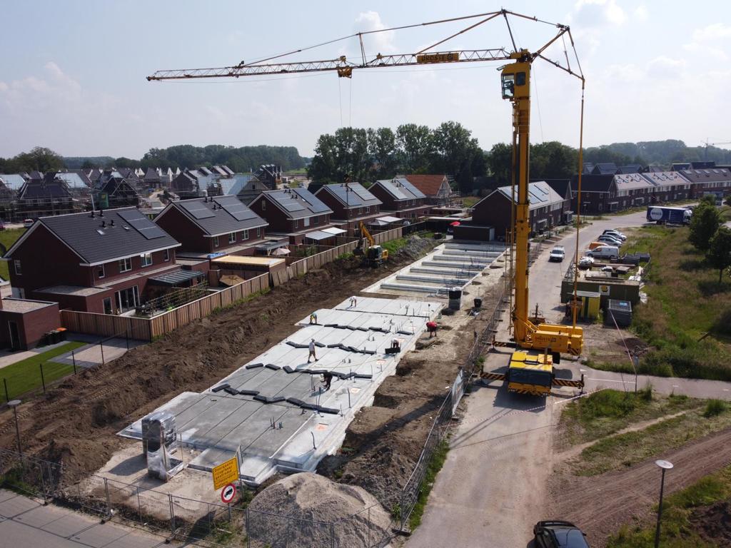 Gaaf hè!? Vanaf grote hoogte is de bouw van De Hoeve te zien. In de Bornsche Maten, aan de rand van het fraaie buitengebied van Borne, realiseren we 19 rijwoningen.