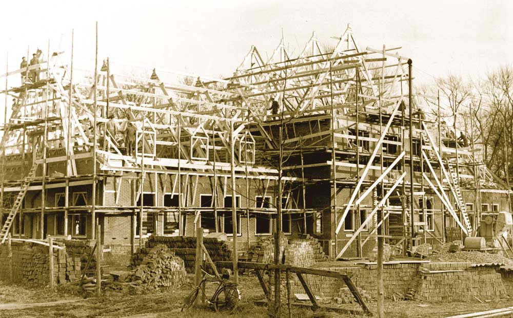De oorlogsjaren waren een moeilijke tijd voor iedereen. De hele familie werkte mee om het hoofd boven water te houden. Na de oorlogsjaren stond Nederland in het teken van wederopbouw. Daarmee groeide ook het aannemersbedrijf aan de Klippenweg in Borne. Mooie klussen, zoals de bouw van het Gemeentehuis in Weerselo en het pand voor de OAD in Holten, zetten de zaak sterk op de kaart. Midden jaren ’50 nemen de broers Johan en Wim het bedrijf van hun vader over. Ze bouwen het familiebedrijf gestaag uit met mooie plannen voor de nabije toekomst.