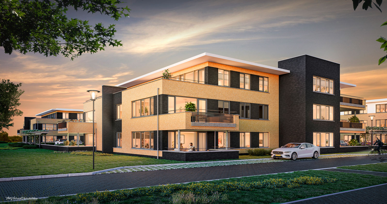 omvat vier fraaie appartementencomplexen. De 38 appartementen met veel oog voor luxe, ruimte en comfort. Gelegen aan de entree van de wijk vormen ze een markant viertal en het visitekaartje van de Bornsche Maten. De vier gebouwen markeren elk een hoek van het terrein, en zijn omgeven door grasvelden, met hier en daar een boom. Samen met de Bongerd, de ontwikkelcombinatie voor de Bornsche Maten, zijn we al flink op weg en krijgen de appartementen vorm. De oplevering wordt eind 2023 verwacht.